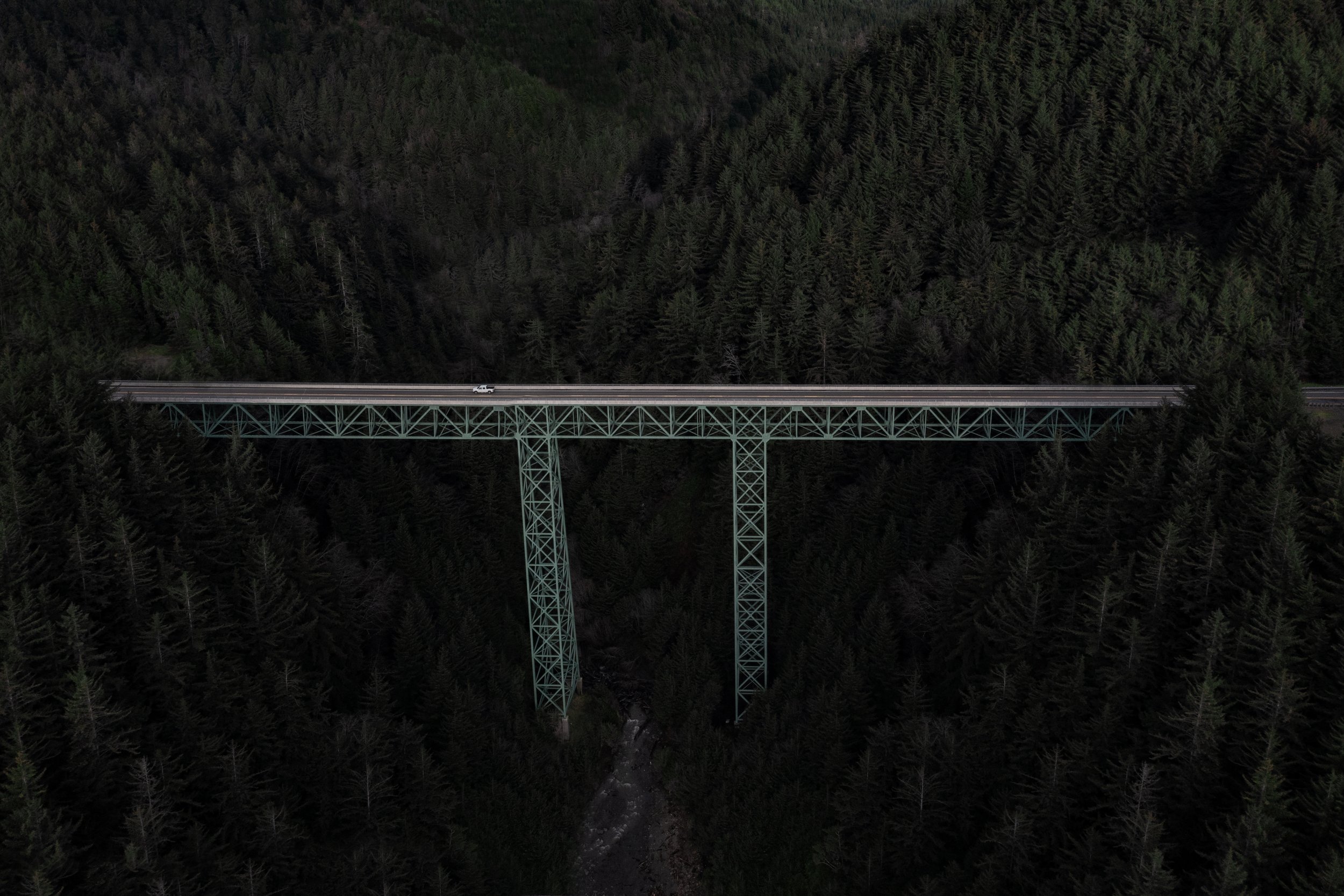 If you want to check it out, look up the Thomas Creek Bridge Overlook on AllTrails. The view from above, with the bridge surrounded by dense forest, makes for an epic drone shot.